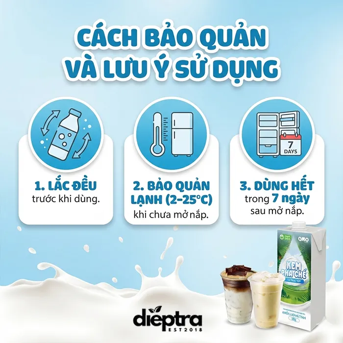 Pha chế trà sữa & Cà phê: Dùng thay thế một phần sữa tươi để tăng độ đậm và ngậy. Đặc biệt phù hợp cho các dòng cà phê hiện đại như Salted Coffee (Cà phê muối) hay Coconut Coffee (Cà phê dừa).