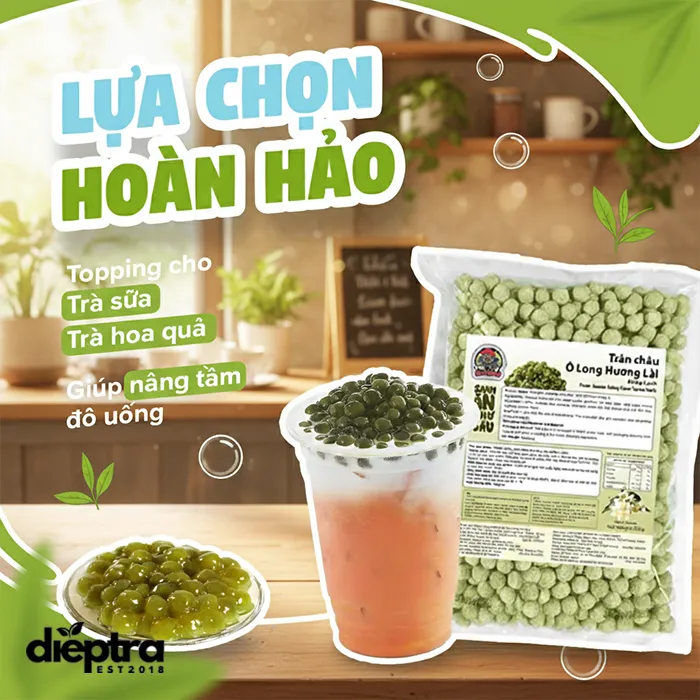 Đây không chỉ đơn thuần là một loại topping, mà là sự hòa quyện hoàn hảo giữa hương vị đậm đà của trà Ô Long và nét thanh tao, dịu nhẹ của hoa nhài.